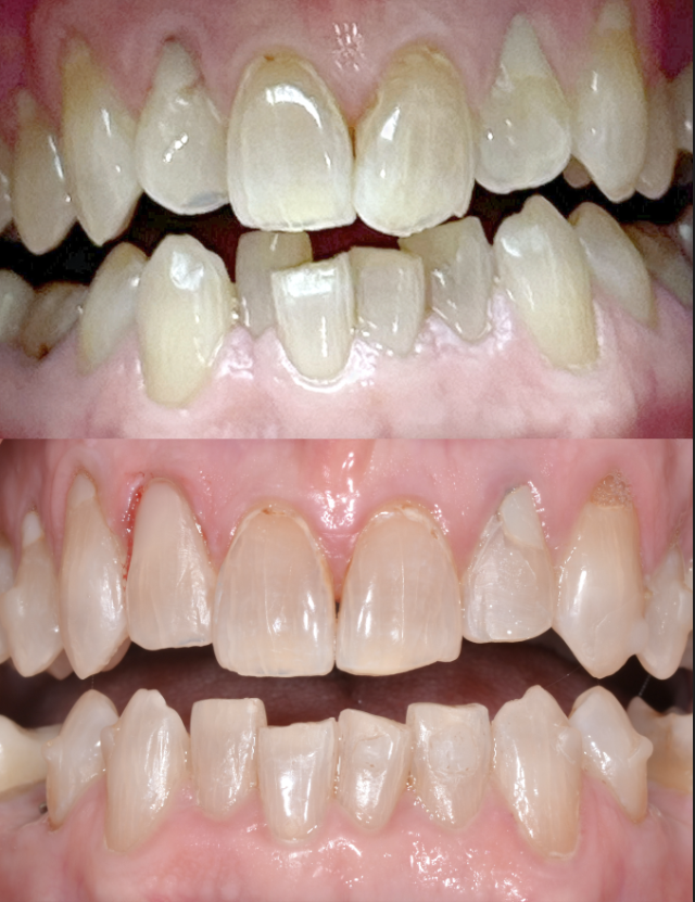 “Mike’s bite was never right. It caused him to grind his teeth into each other until they began to chip and crack. Another dentist tried to perform a procedure known as “bonding” on the front teeth, but they still broke.